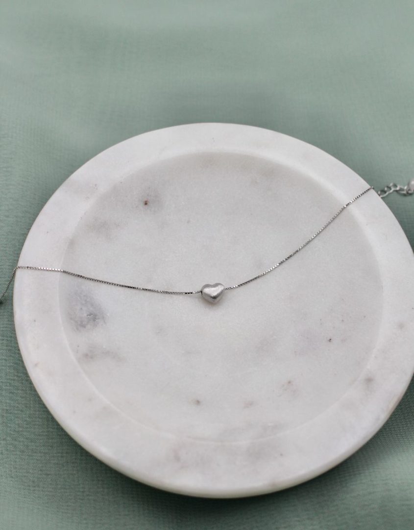 Elegant and timeless, our Dainty Sterling Silver Heart Bracelet is a sweet symbol of love and connection. A petite, polished heart rests gracefully on a delicate sterling silver chain, creating a look that’s both simple and sophisticated.