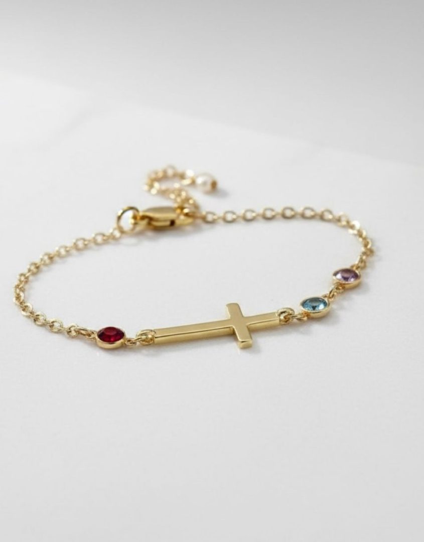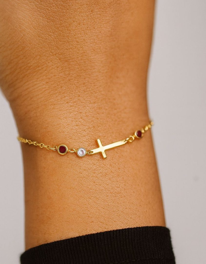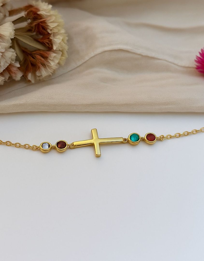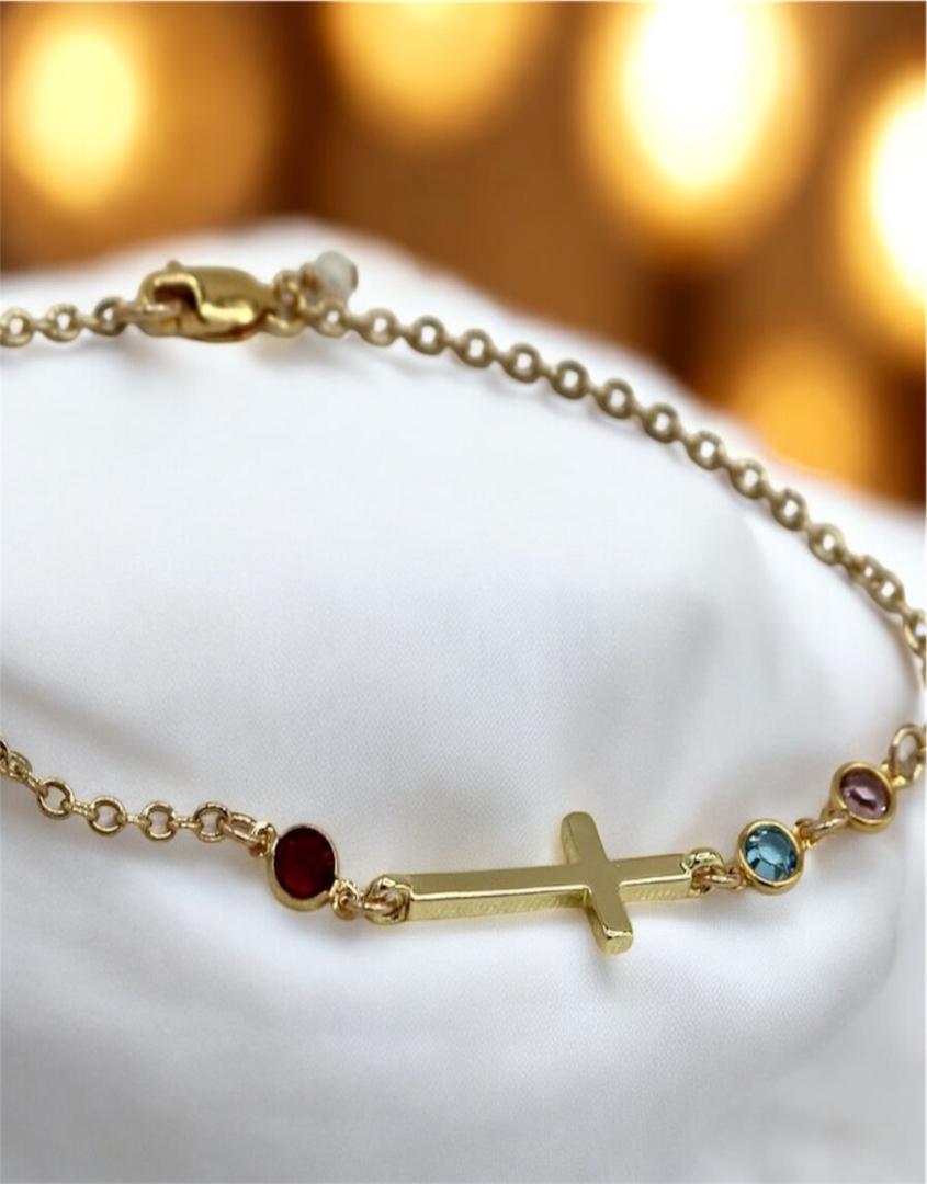 - Cross and birthstone bracelet