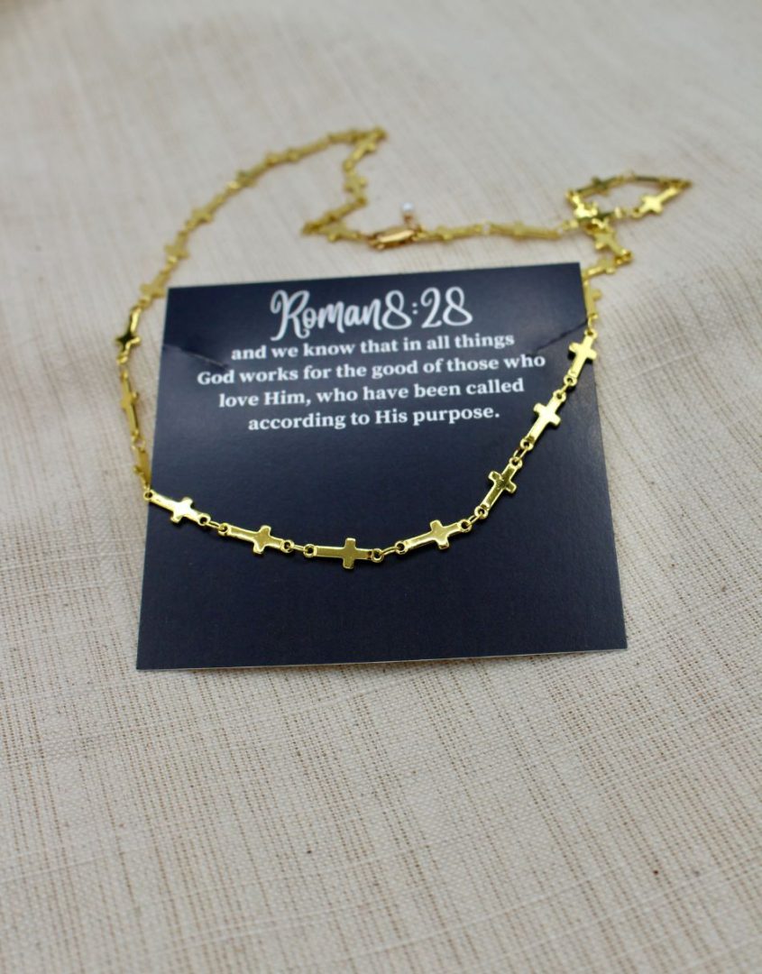 Inspired by Romans 8:28, the His Purpose Cross Necklace is a heartfelt reminder that every moment, the joyful and the challenging, is woven together for good by His divine plan.