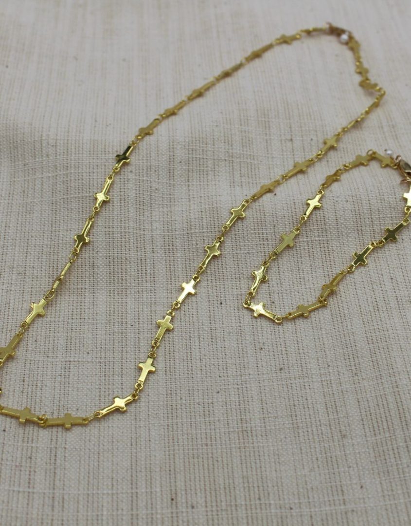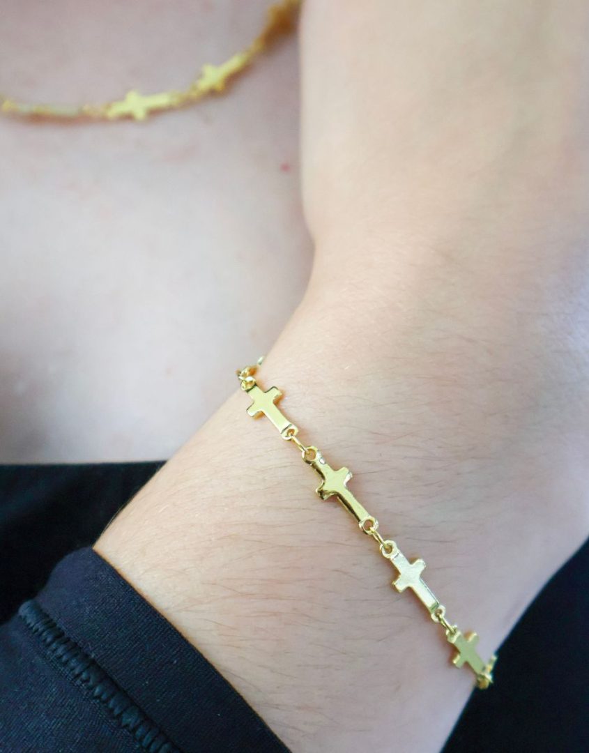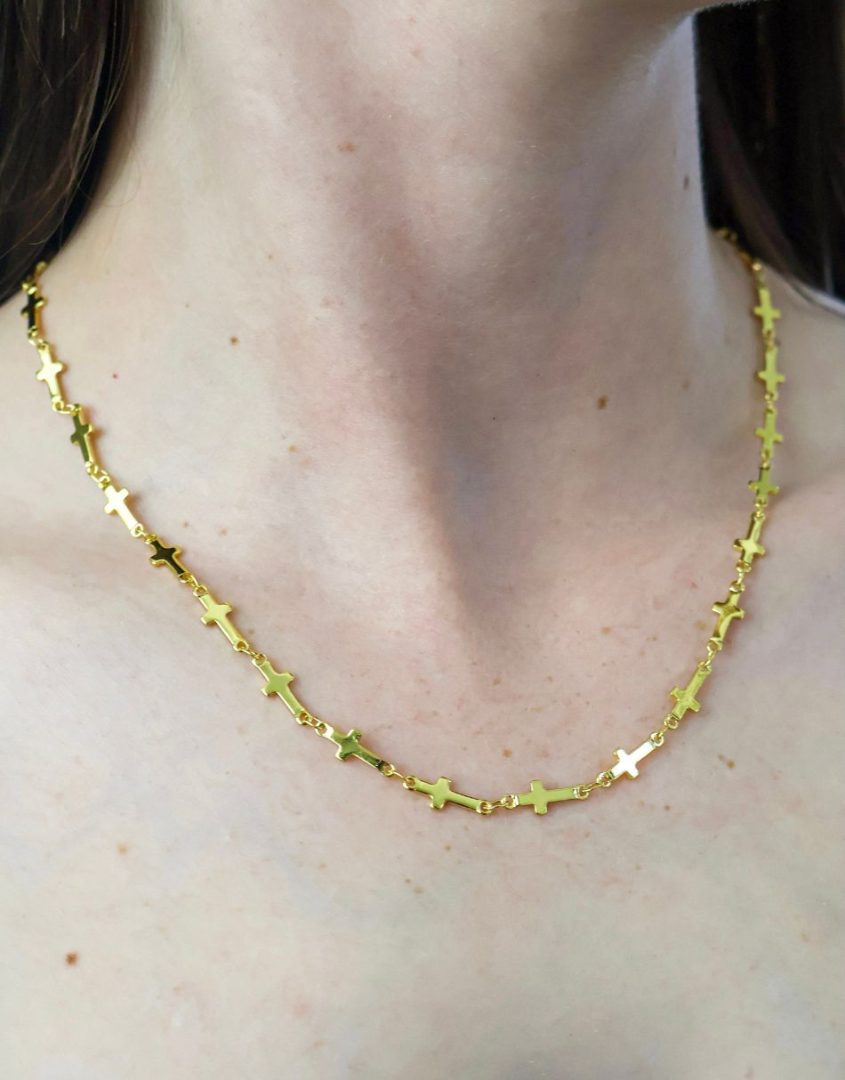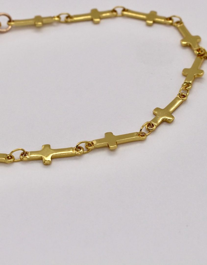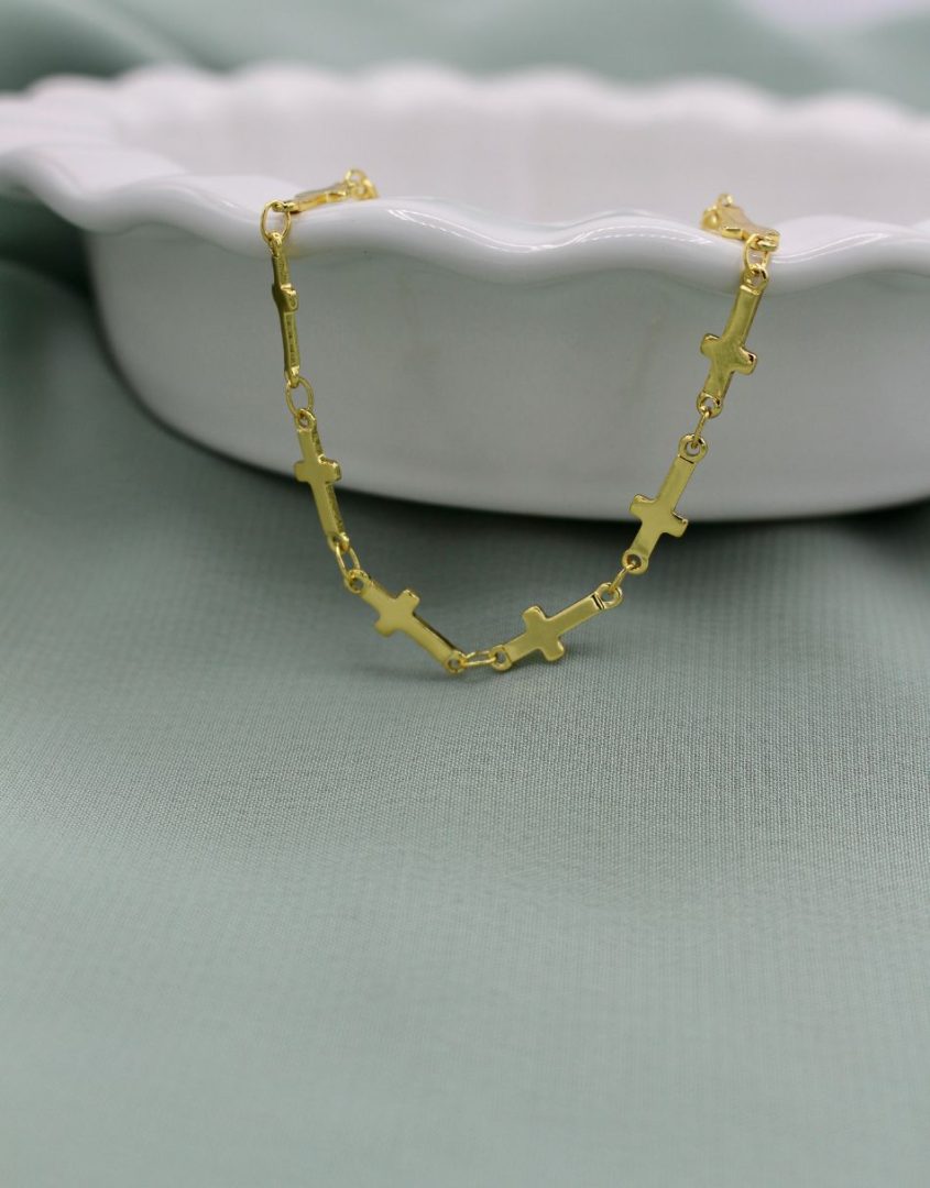 Each tiny gold-filled cross is thoughtfully linked, creating a graceful chain that symbolizes unwavering faith and the beauty of walking in His purpose.