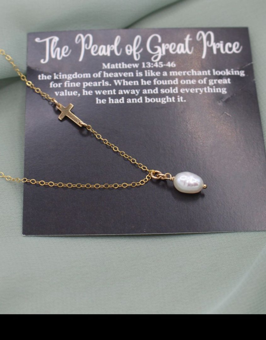 Inspired by Matthew 13:45–46, the Pearl of Great Price Necklace is a radiant reminder of the immeasurable worth of faith and the beauty of pursuing what truly matters.